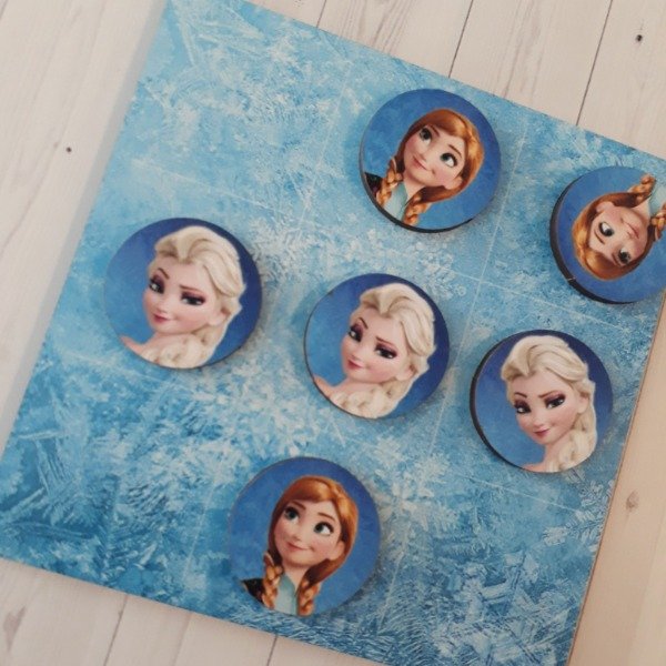 Tablero de 12x12 y 6 fichas de 3cm de diámetro.