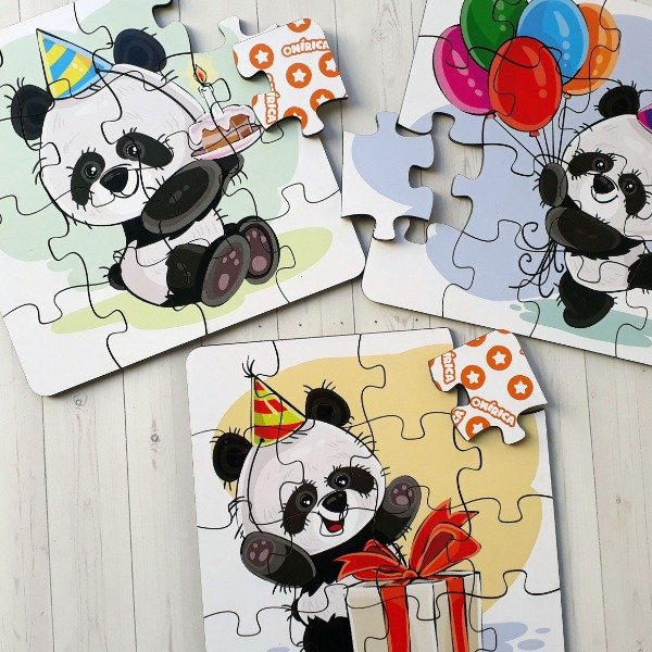 Set de 3 rompecabezas de 16 fichas cada uno. 14cm x 14cm