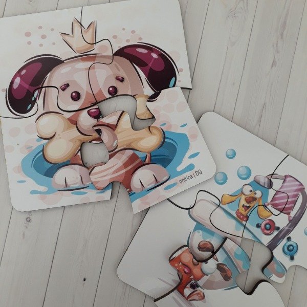 Set de 2 rompecabezas de 4 fichas cada uno (12cm x 12cm)